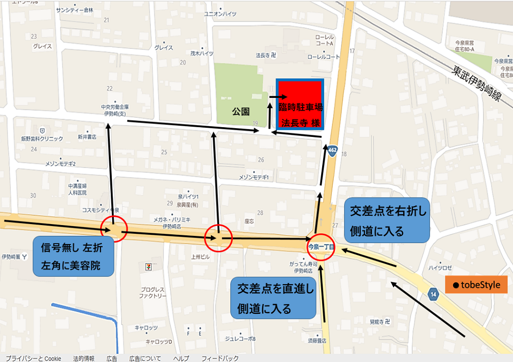 法長寺 様敷地内駐車場 〒372-0031群馬県伊勢崎市今泉町1丁目19-5